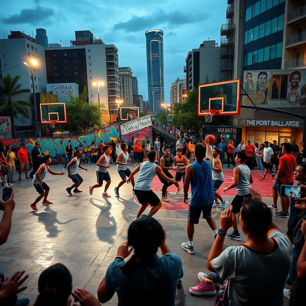 除了竞技的乐趣,街头篮球还深深融入了城市文化。你可以在巷尾、广场、天桥下找到它的身影。涂鸦的墙壁、嘈杂的街市、夜色中的灯火,都是这片“战场”的背景。每一场比赛都像是城市的缩影,反映着亿万年轻人的梦想与热情。社区里的篮球场,仿佛变成了一个微缩的社会缩影。